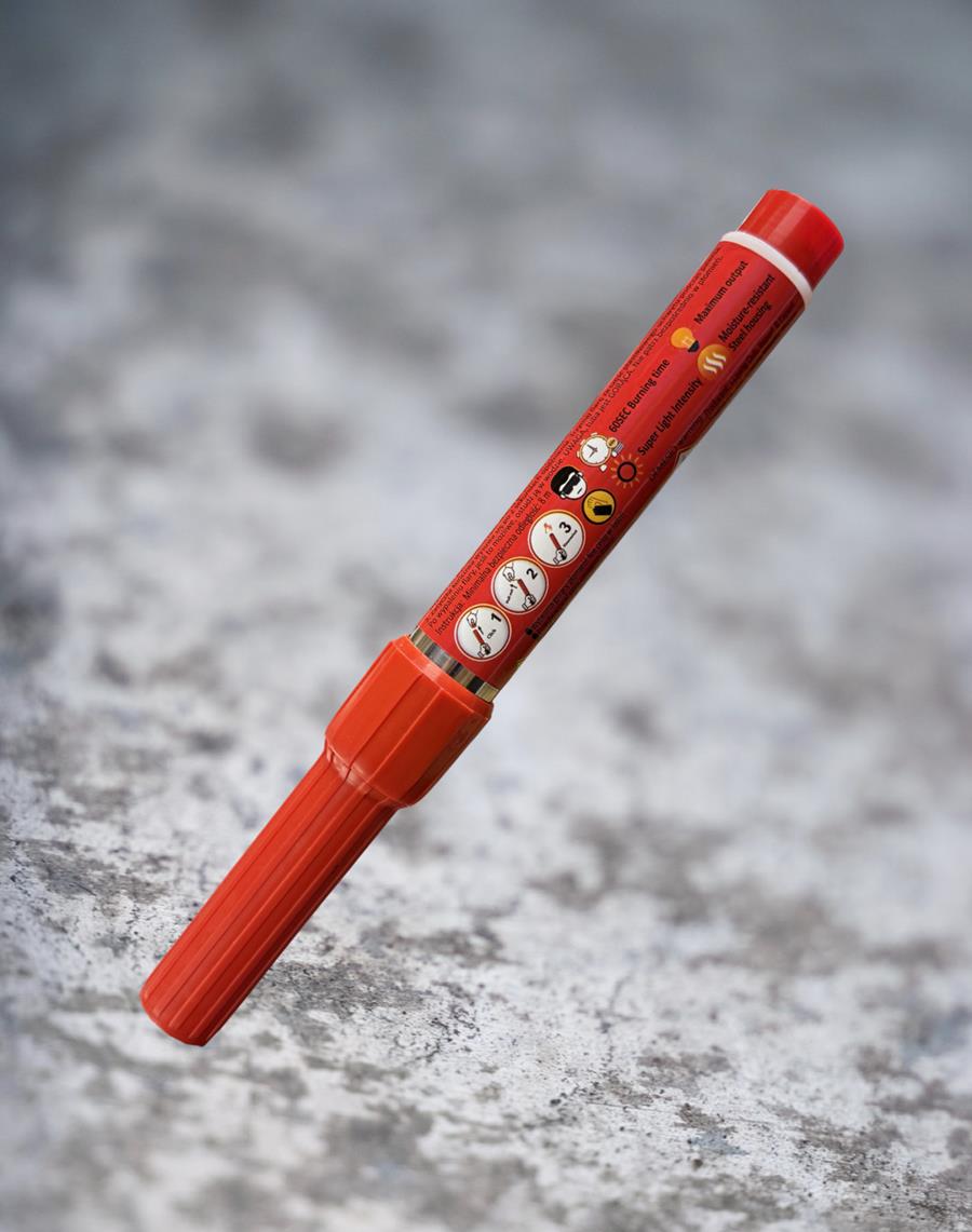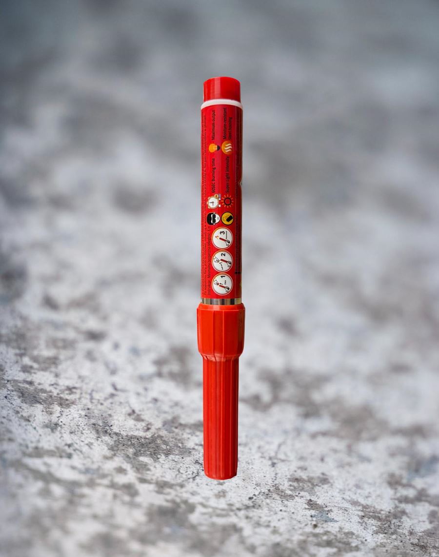 Červená světlice s vysokou svítivostí, která se zapaluje trhnutím bez nutnosti použít zapalovač.