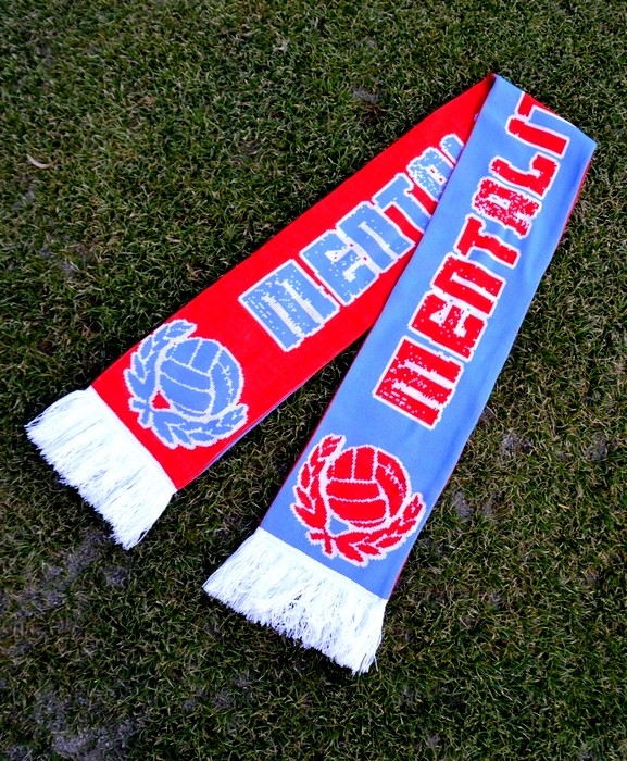 Šála Mentalita ultras s nápisem a na konci s tradičním vyobrazením ratolesti a míče. Nápis je z obou stran stejný jen se mění barva.