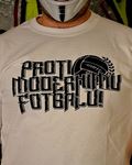 Tričko pro všechny fanoušky, kterým je proti srsti fotbalová moderna. Fotbal jako byznys, omezování a zákazy pyra. V některých státech už se dokonce nesmí při fotbale ani stát... Proti modernímu fotbalu! Na rukávu je tkaný brand supporter, stejně jako za krkem.